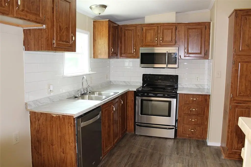 20796 Walker Rd., Tecumseh, OK 74873∼ 3 Bedroom 2 bath, 1512 Sq ft Mobile Home on 3.38 ± Ac. New paint, flooring and appliances. Priced at $195,00.00. See Zillow link below for more information.